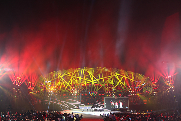 由國(guó)家體育總局和北京市政府主辦,北京電視臺(tái)承辦的“一路拼搏——慶祝中國(guó)奧運(yùn)代表團(tuán)凱旋主題晚會(huì)”于2012年9月3日晚在北京奧林匹公園中心區(qū)慶典廣場(chǎng)舉行。初秋的慶典廣場(chǎng)星光璀璨、明星云集,剛剛在第30屆倫敦夏季奧運(yùn)會(huì)上載譽(yù)而歸的林丹、易思玲、曹緣、陳一冰、張成龍、趙云蕾, 陳定、鄒市明、雷聲、李娜、蔡赟、傅海峰、張楠等13名奧運(yùn)冠軍集體亮相,不僅現(xiàn)場(chǎng)用精彩的才藝表演展現(xiàn)了奧運(yùn)冠軍的多才多藝,還講述了他們拼搏背后的成長(zhǎng)故事,表達(dá)了對(duì)祖國(guó)和人民的感激之情。同時(shí),成龍、譚晶、戴玉強(qiáng)、莫華倫、羽泉、朗朗、胡彥斌、齊秦、薩頂頂、李宇春、林妙可等演藝界明星鼎力助陣,用精彩的文藝演出為奧運(yùn)冠軍慶功。